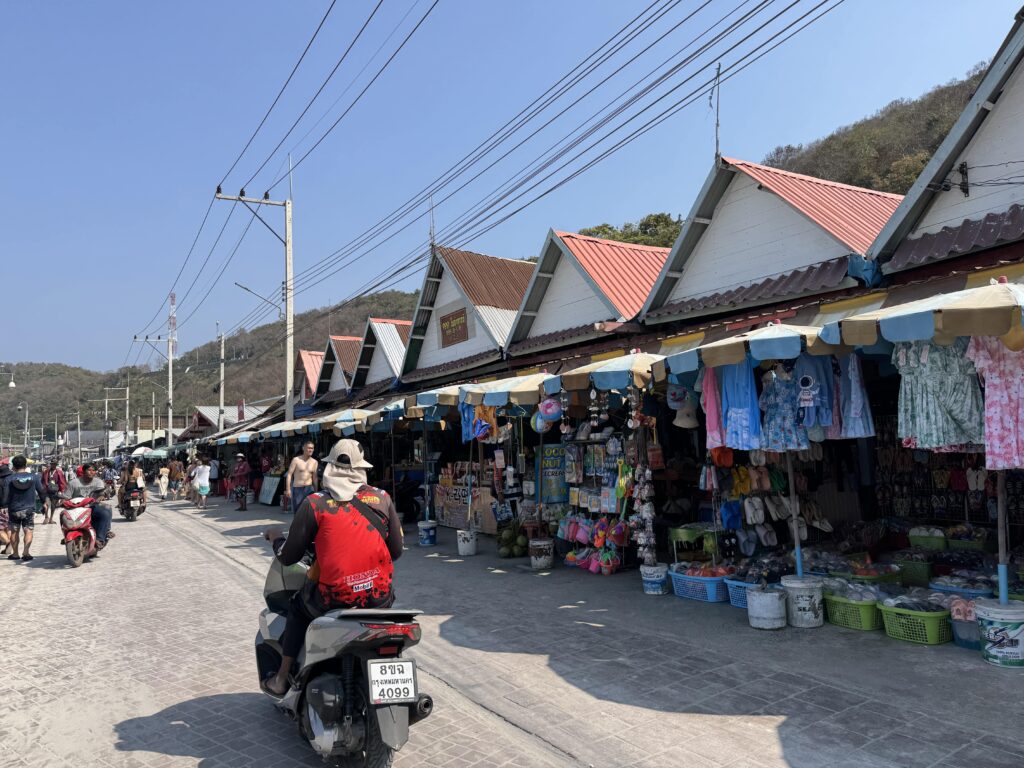 ビーチからすぐの通りにはご飯屋さんやお土産屋さんがずらり。