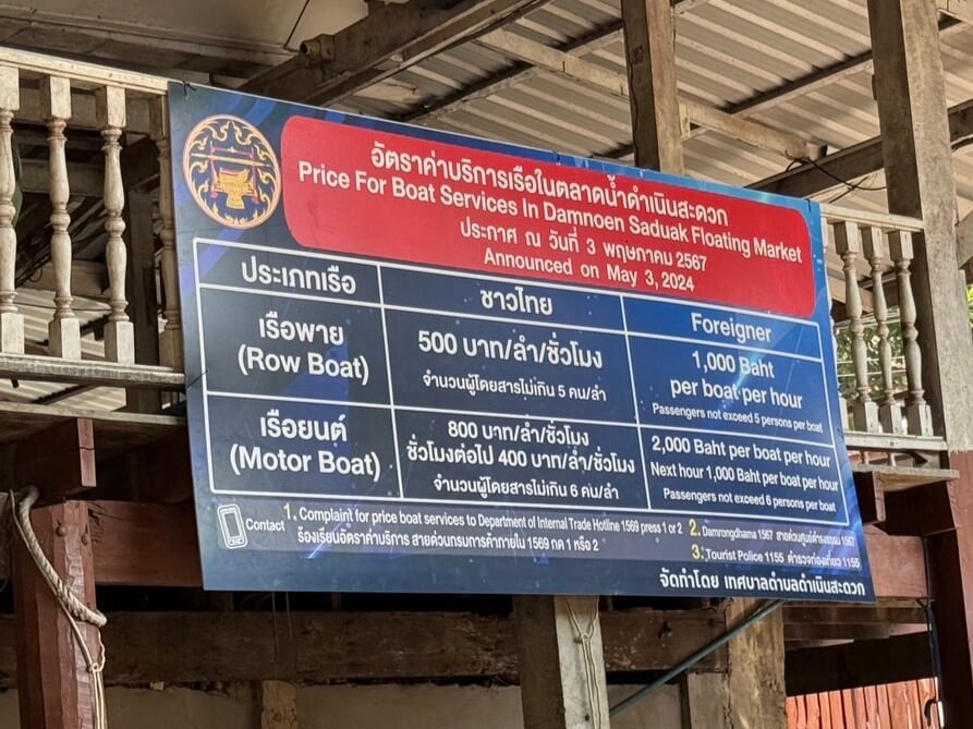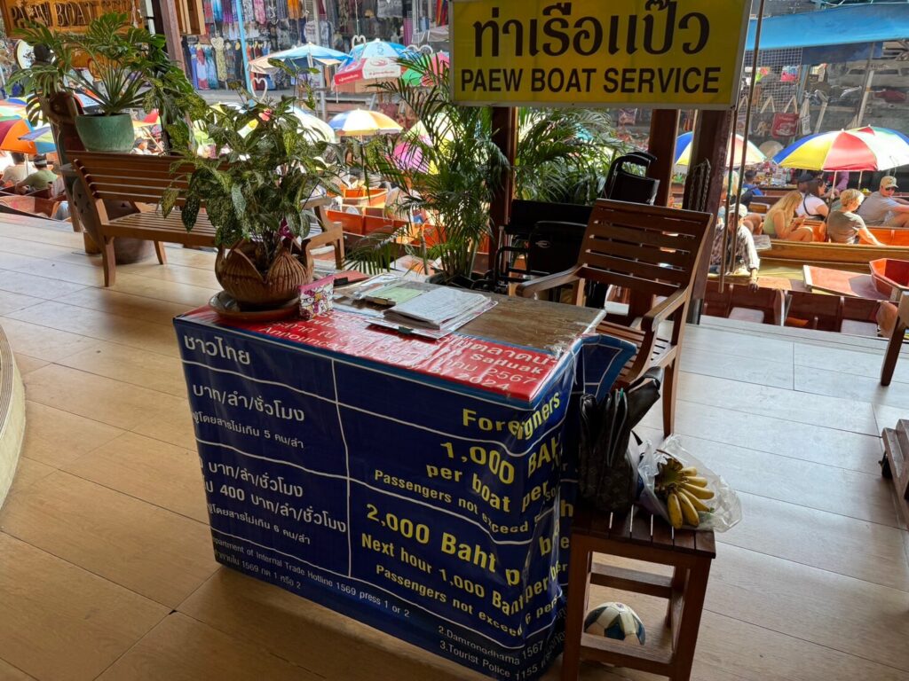 3年ほど前の口コミを見ると1人200バーツだったとのお話もあるのですが、2024年5月のアナウンスでは上記の値段が…