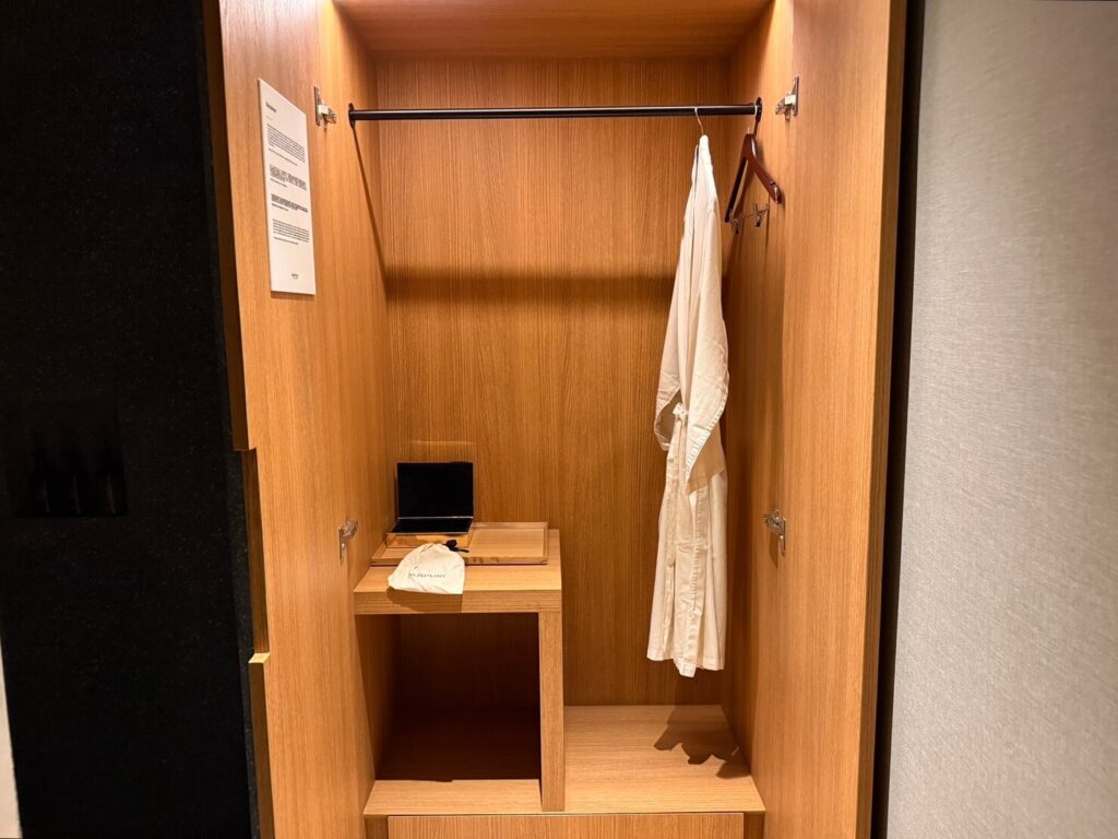 フェイシャルトリートメントでもデコルテや肩までほぐしてくれるので、こちらのバスローブに着替えます。
