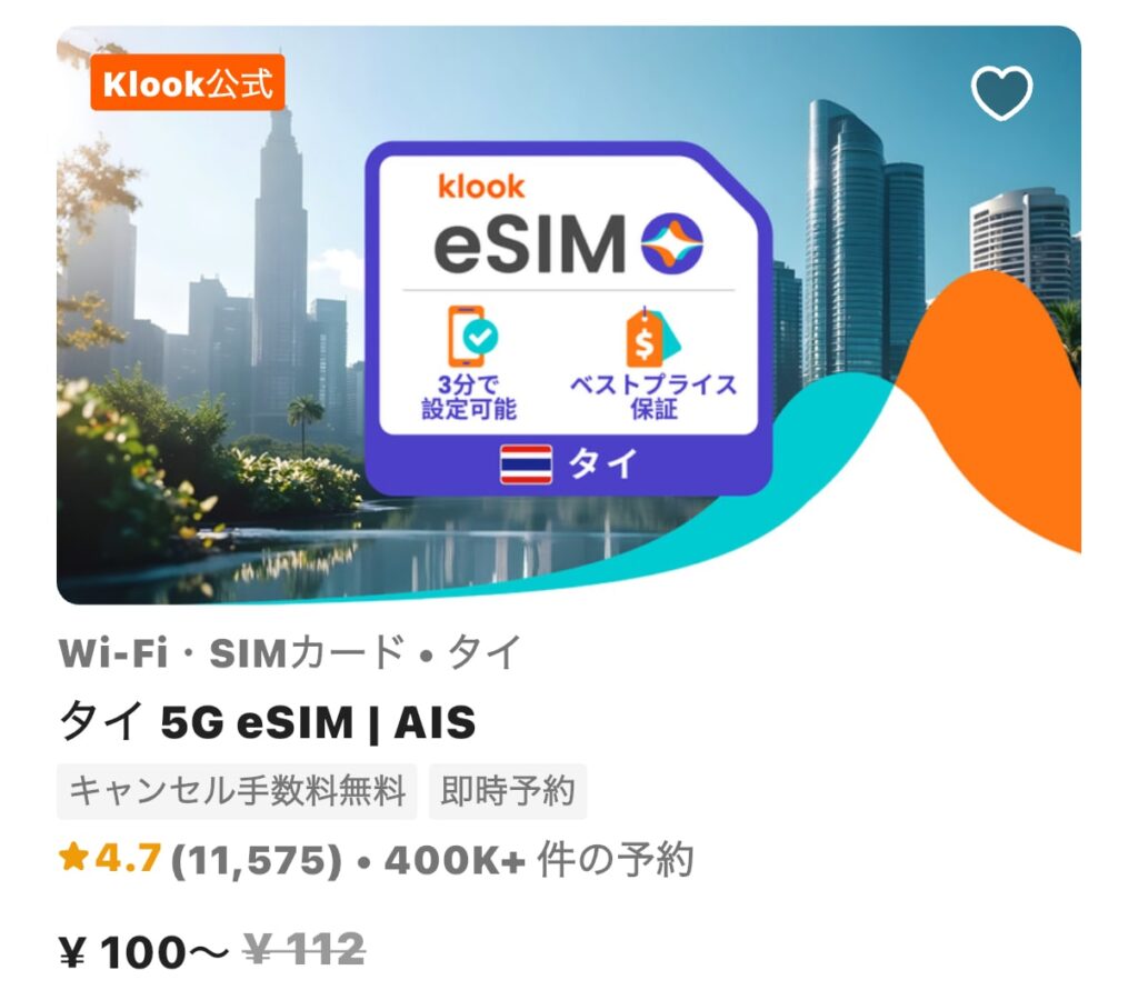 いくつかの会社がeSIMを出していますが、私はいつもKlookが出しているこのサムネイルのものを使います。