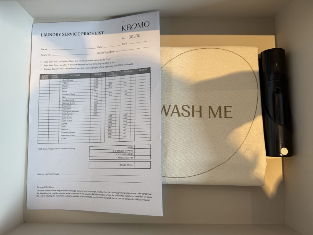 洗濯はコインランドリーはなく、ランドリーサービスがあります。