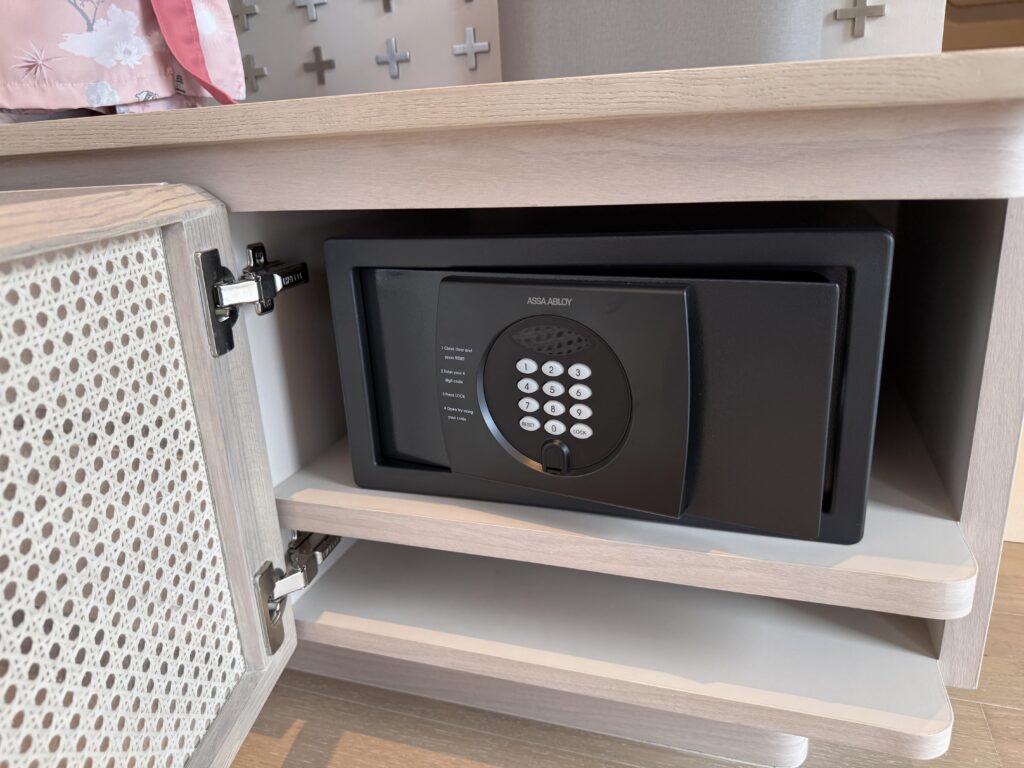 ドライヤー、セーフティボックス、スリッパなど基本設備も完備。