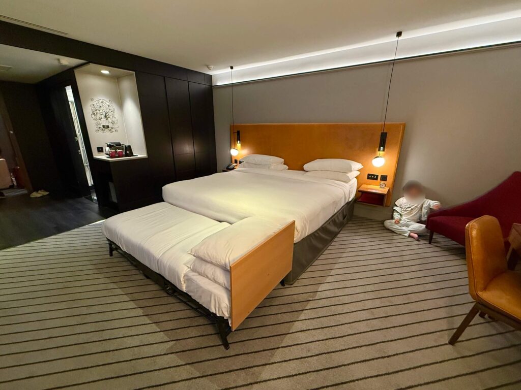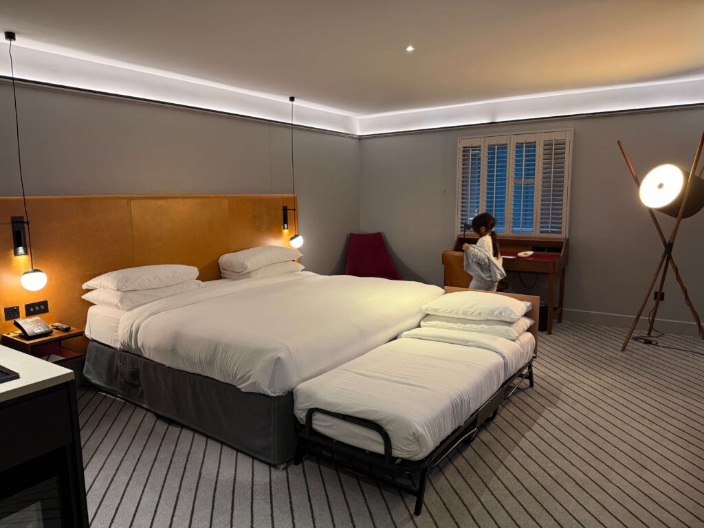 アンダーズロンドンの一番お手頃なお部屋はエクストラベッドNGだったみたいですが、このお部屋はエクストラベッドを置いても十分な広さがありました。