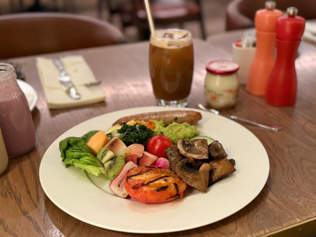 ビュッフェスには、フレッシュジュースやヘルシー食材もたくさんでいい感じの朝。