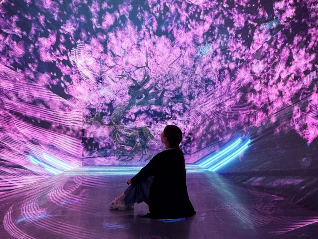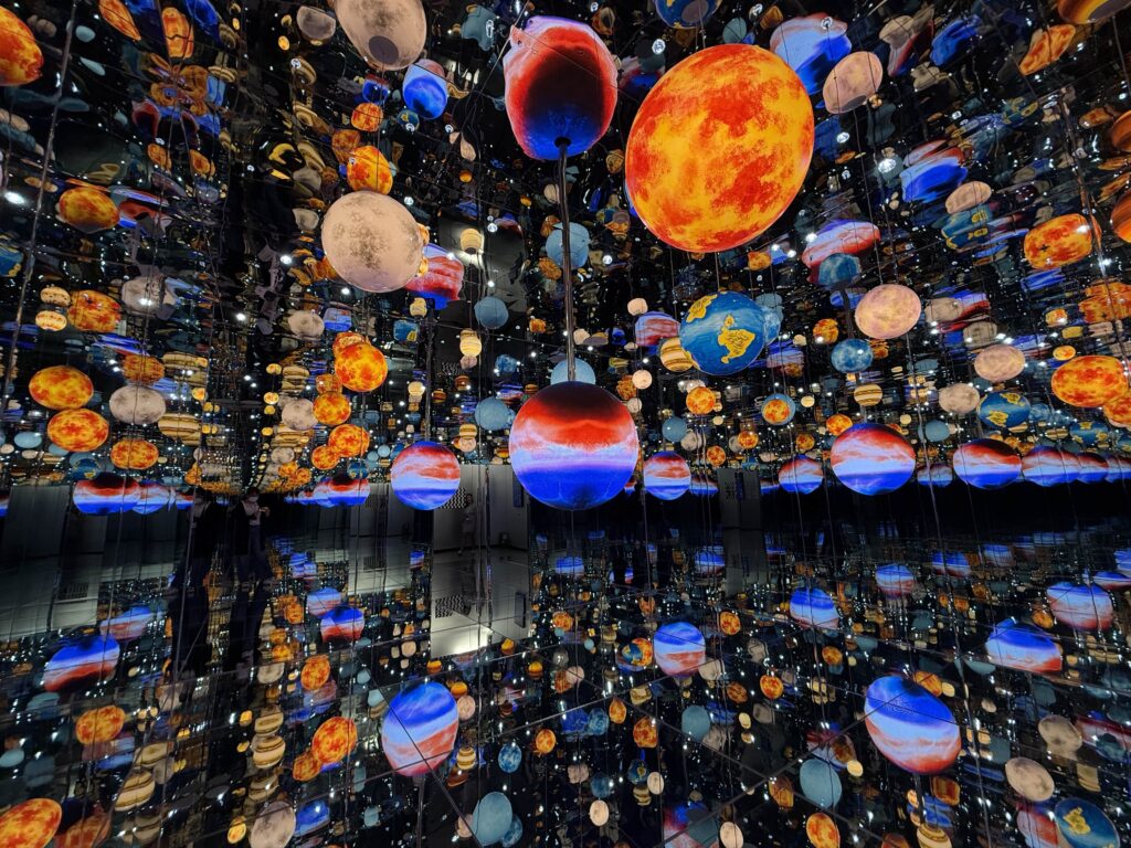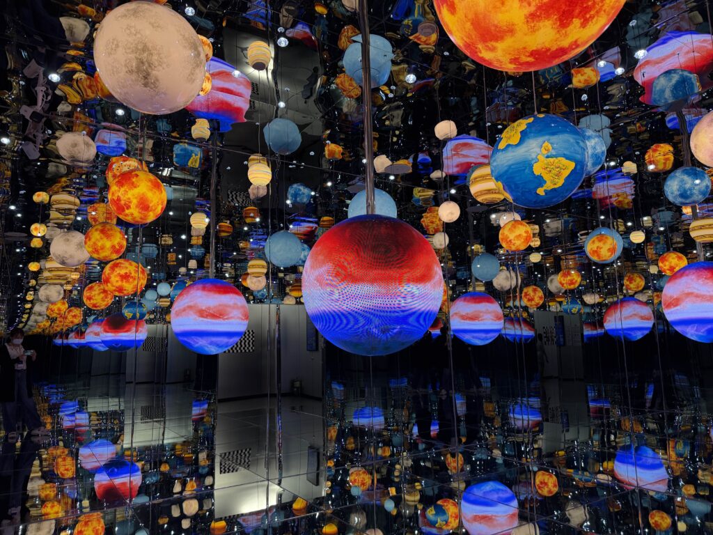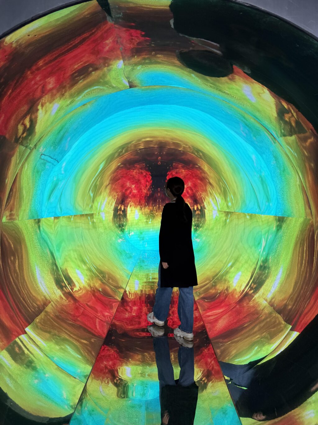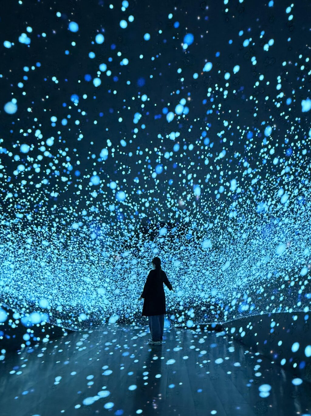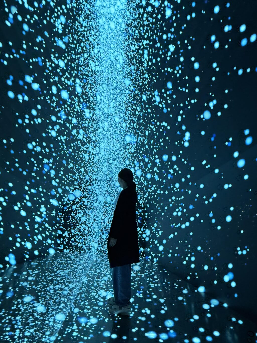空間そのものに入り込んで体験したり写真を撮ったりという楽しみ方で、光・映像・音を使って“時間と空間”をテーマにした世界観が広がっています。