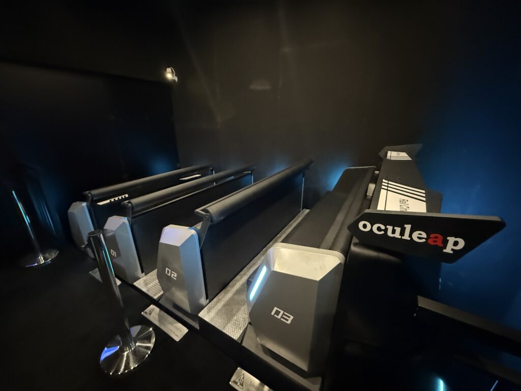 このジェットコースターのような乗り物に乗って、大迫力に動く映像と共に楽しめます。
