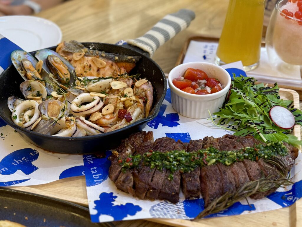 海鮮とステーキが乗って1,350バーツの「サーフ&ターフプラッター。