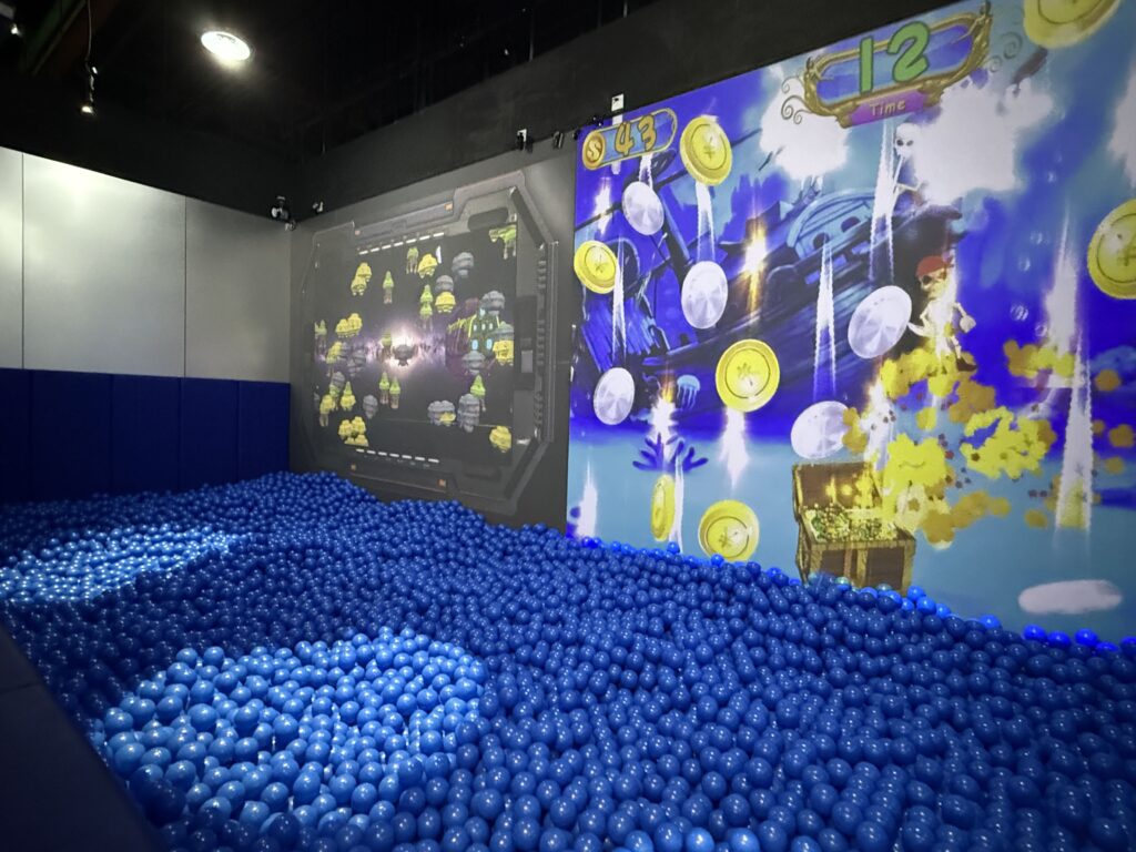 キッズが遊べるボールプールは、壁にボールを投げると映像が反応する!